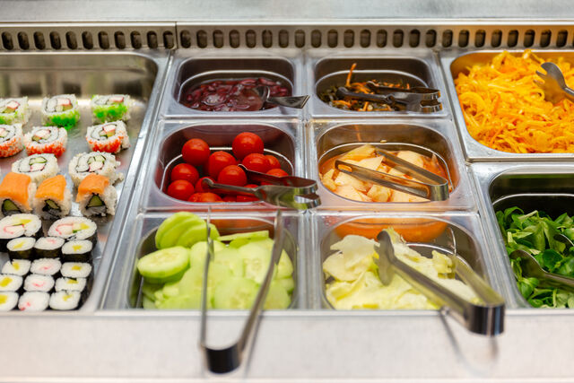 Lassen Sie sich von unserer asiatischen Küche begeistern. Salate erwarten Sie bei uns. In unserem Haus servieren wir Ihnen wunderbare Gerichte wie beispielsweise Fisch und dazu ein alkoholisches Getränk – wir beraten Sie gerne. Unser Obst oder unsere himmlischen Desserts werden Sie zwischendurch oder als Nachspeise begeistern. Unsere Leidenschaft ist das Gastgewerbe. Kommen Sie zum Mittagessen oder zum Abendessen zu uns und genießen Sie eine rundum schöne Zeit. An unserem leckeren Buffet präsentieren wir Ihnen eine reichhaltige Auswahl an Speisen ohne langes Warten. Für alle Food-Blogger: Fotomachen und sofort auf Instagram teilen – kein Thema, wir haben kostenfreies WLAN!